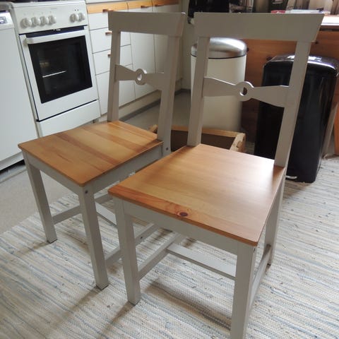 Myydään kuusi kappaletta kuvien mukaisia Ikea Kaustby tuoleja. Tuolit maalattu tumman ruskeiksi (matta), koska alkuperäinen maalipinta oli huonossa kunnossa.