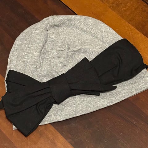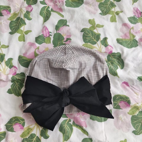 Papu rusettipipo, kokomerkintää ei ole, mutta todennäköisesti M (53-56 cm päähän sopiva).