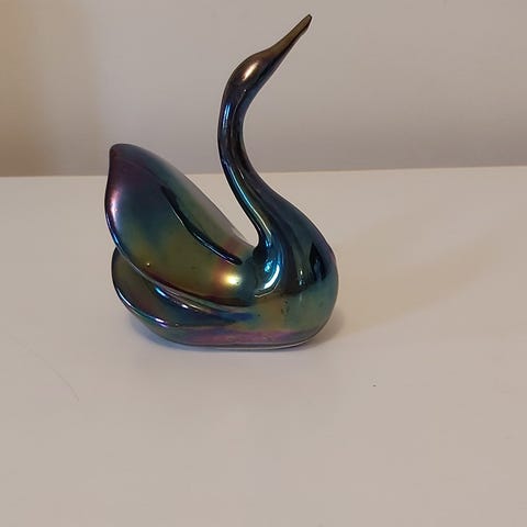 1) Joutsen, korkeus noin 11,5 cm, pituus noin 11 cm, leveimmillään noin 5,5 cm. 4 euroa.