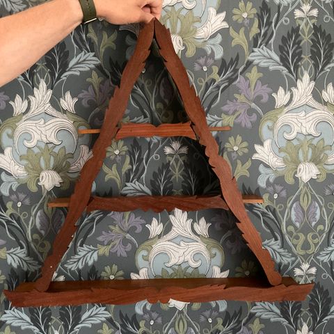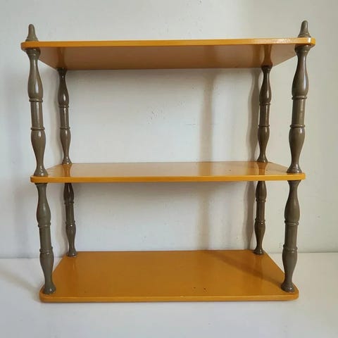 Vanha jämäkkä seinähylly, täyspuuta, melko painava.