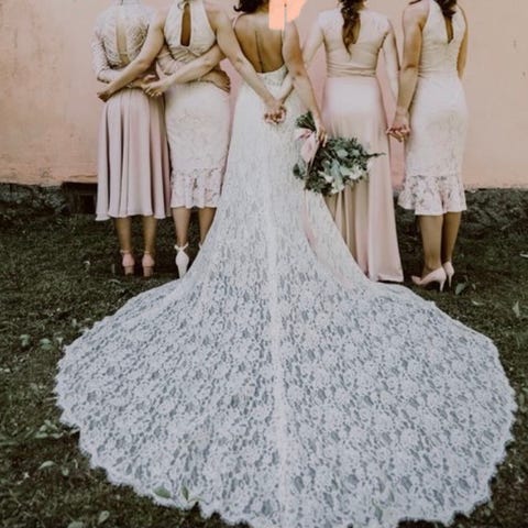 Mukaan saa pukupussin ja kolmen metrin pituisen hunnun, joka ollut vain kuvauksissa hetken.