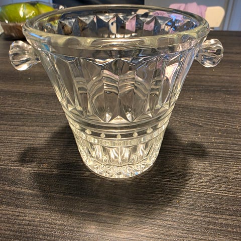 Nizzan antiikkitorilta tuotu jääpala-astia. korkeus ilman kahvaa 13,5cm, suun halkaisija 10cm. Metallikehys kiillottamatta tarkoituksella.voi halutessaan kiillottaa... Lähetys 9eur tai nouto.