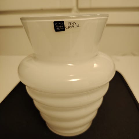 Myydään 14,5 cm korkea Kerttu Nurminen Arabia Finncrystal Marlene maljakko.