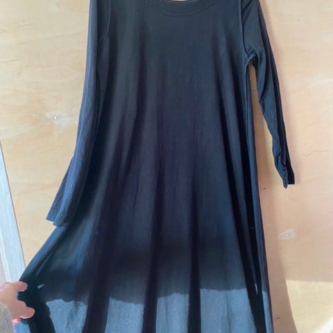 Upea Vuokko Nurmesniemi-malliston juhlamekko, nimeltään Nainen, mustaa viskoosisamettia, jossa kullanväriset kuviot, vuori japaninsilkkiä, takana vetoketju. Malli on M-kokoisen vartalon myötäinen suorana lantiolle asti ja siitä hieman vinona täyskellohelma. Harvoin tarjolla, sopii juhlaan ja esiintymisasuksi, ajaton malli. Postitus 10,90 € lisätään hintaan.