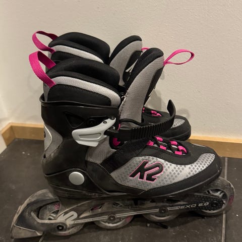 Meillä näillä luisteltu useamman kokoisilla jaloilla, hyvin ja tukevasti on rullannut:).