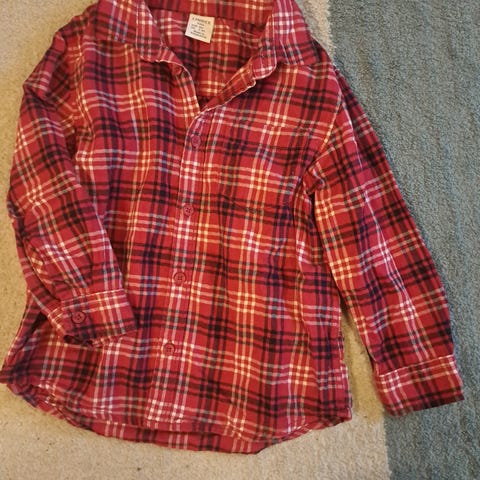 Kahdet ruskeasävyiset lyhythihaiset kauluspaidat, koko 104.