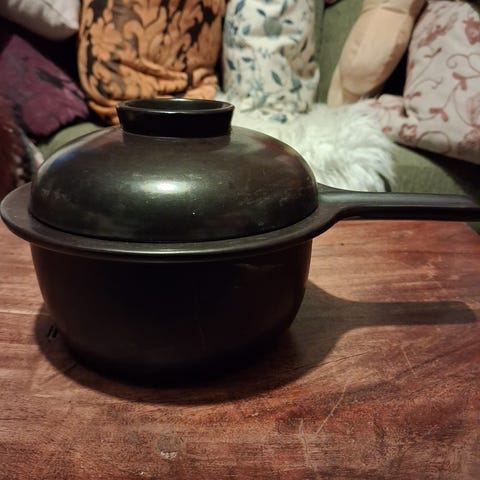 Kasari: halkaisija on 17 cm ja korkeus ilman kantta 7,5 cm, kannen kanssa n. 11,5 cm. Kunto käytetty, hyvä. Hinta 15€.