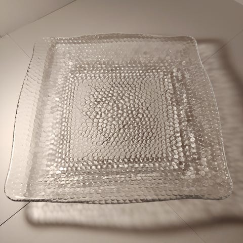 Pentikin lasilautanen esim. Kynttilälle tai tarjoluun. Leveys n. 17x17 cm. Korkeus n.3 cm.Väri sininen.
