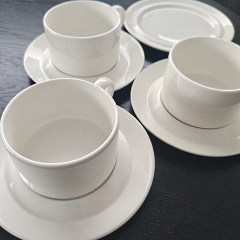 Heikki Orvolan suunnittelema Moreeni kahviastiasto 34-osaa yhteishintaan 250 eur.