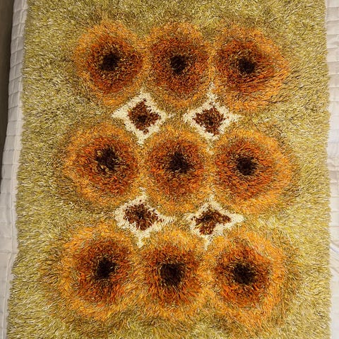 Kauniin värinen ryijy.