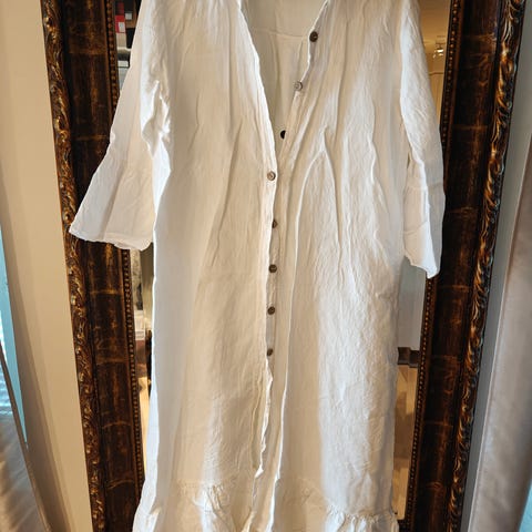 Myydään siistissä kunnossa oleva valkoinen pellava mekko.