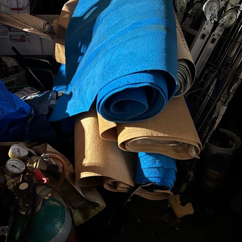 Rullamattotyyppiset matot kovaan käyttöön. 200 x 90 x 2 cm. Paino noin 8 kg. Vahvalla ja kätevällä vaijerirungolla. Hallin lattialle, puutarhamatoksi, pesutiloihin. Kestää varmasti ajoneuvoalustanakin. Jotain vahvamuoviseosta. Ei tusinatavaraa! Useita mattoja, joista paria kpl ei ole koskaan alustalleen levitetty. Uuden hinta noin 400 e.