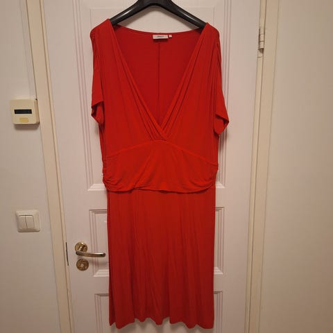Myydään hyväkuntoinen Orsayn tummansininen mekko punaisilla raidoilla.Koko on L ja ka-ka 41cm sekä pituus olkapäältä alas helmaan 91cm.Meteriaalina viskoosi ja polyamidi.Alhaalla kellohelma.
