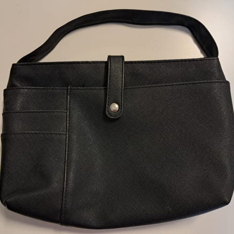 Laukussa vetoketju ja lyhyet käsihihnat. Sisällä pieni vetoketjullinen tasku, kuminauhapaikkoja huulipunille. Pari ohutta silikoonipussia vetoketjullisen sisäpussin pinnalla.