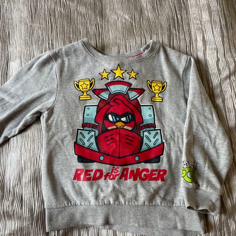 Erinomaisessa kunnossa oleva H&M:n Angry Birds -teemainen collegepuku, kokoa 116. Pesty vain hajusteettomilla pesuaineilla, lemmikitön ja tuoksuton koti.