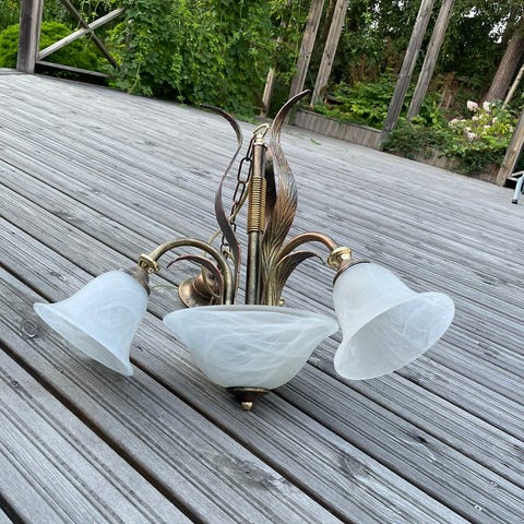 Kaunis kattolamppu. Kaikki kuvut tallella vaikka eivät kuvassa näykkään