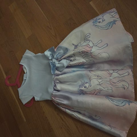 Tyttöjen juhlamekko, koko 110 cm. Alempi kangas ohutta laskeutuvaa satiinia, päällä yläosasta kirjailtu sifonki. Pari kertaa käytetty, siistissä kunnossa. Helman sifongissa pari pientä vaaleaa tahraa sekä yksi värittömällä kynsilakalla pysäytetty langanveto/reiän alku (ks kuvat). Hajusteettomalla pesuaineella pesty. Nouto Espoosta tai postit lisätään.