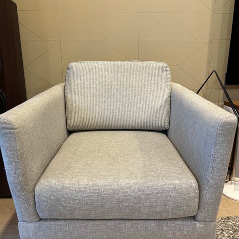 Myydään kotimaisen Shapes valmistama nojatuoli Linwoodin Ireland kankaalla.