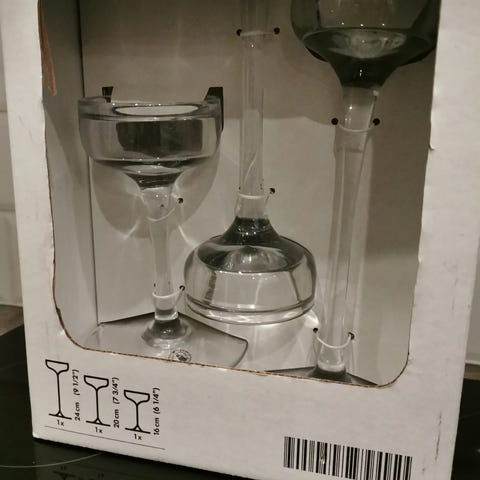 Ikean kirkkaita pöytäkynttilän aluslautasia.
