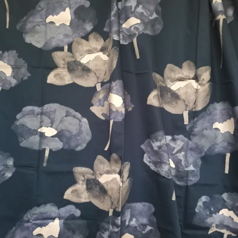 Tukevaa puuvillasatiinia, design Anu Luhtanen 2008. Leveys 150 cm, pituus 158 cm.