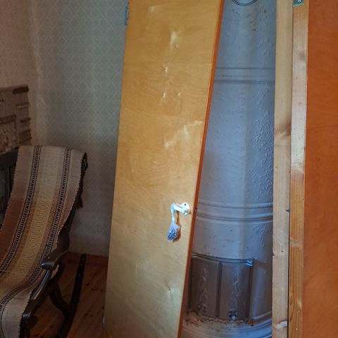Kaksi rintamamiestalon kaapinovea karmeineen vuodelta 1958. Mukana saranat ja aidot vetimet. Korkeus 2 m, leveys 58,8 cm. Hinta 100 euroa, nouto Pieksämäeltä.