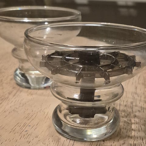 Vadin kukkakuvion vieressä värillinen piste, joka ilmeisesti tullut valmistuksessa. Samoin vadin 2ssa reunassa himmeä, sinertävä "usva"-raita, joka myös näyttää valmistuksen aikaselta, eikä tunnu käteen.