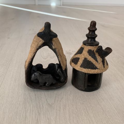 34 cm korkea patsas, materiaali kova massa. Ostettu Suomesta.