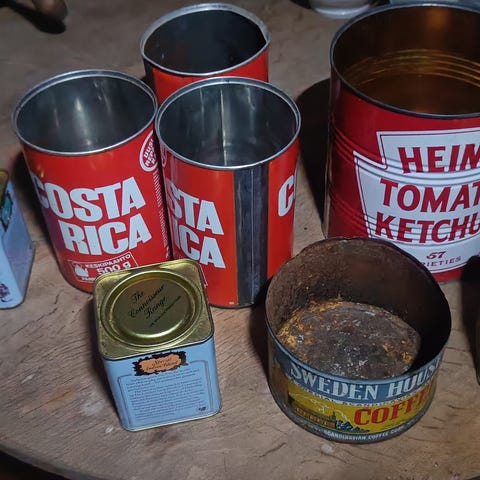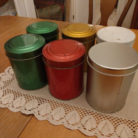 2kpl valkoisia metallipurkkeja halkaisijat 20 ja 15 cm, 12€/yhteensä