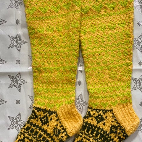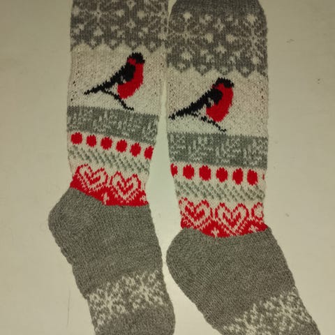 Nalle langasta neulotut villasukat hello kitty kuviolla. Koko 36