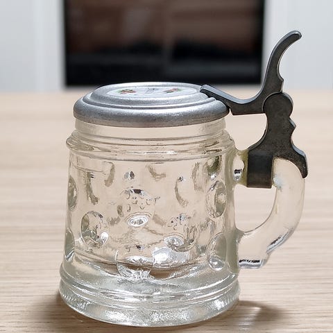 korkeus 17cm, suuaukon halkaisija ulkomitta 5cm, hyvin pieniä hankaumajälkiä, käytetty hyväkuntoinen,