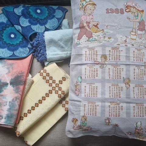 Käyttämätön Kalenteripyyhe 1998. Puuvillaa. Kork 62cm. Lev 42cm. Hyväkuntoinen. Naulalenkki on. Hinta sis pk. Kouvola