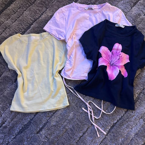 Kolme t-paitaa merkiltään Impuls ja yksi merkiltään Compa. Värit vaaleanpunainen, pinkki, oranssi (Impuls) ja vaaleansininen (Compa). Koko S. Kaikki yhteensä hintaan 15 €.
