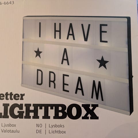 Myydään tarpeettomana vähäisellä käytöllä ollut light box, adapterilla ja irtokirjaimilla/kuvioilla.