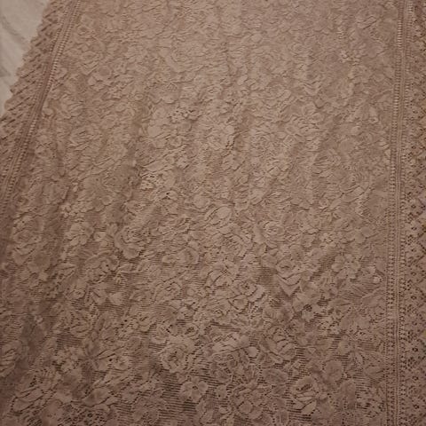 Kuvan näyttävä roosa -beige pitsinen näyttävä kangas vajaa 7m eli 6.80