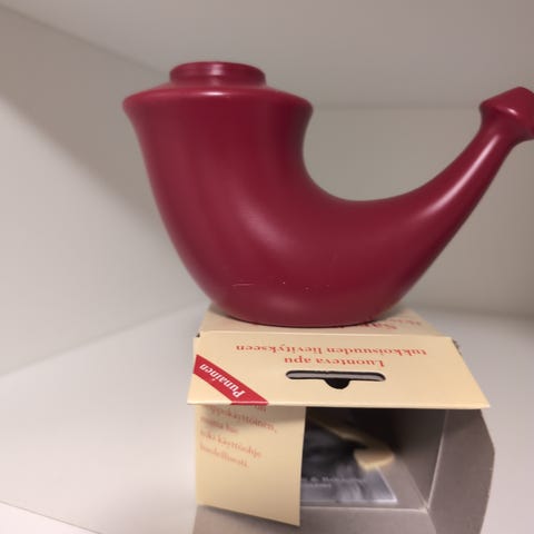 Nenäkannu Sarvikuono on nenän huuhteluun tarkoitettu laite. Nenänhuuhtelu haalealla suolavedellä poistaa epäpuhtauksia sieraimista ja kosteuttaa nenän kuivia limakalvoja. Nenäkannu sopii käytettäväksi niin flunssan ja poskiontelontulehduksen kuin siitepölyallergiankin yhteydessä.