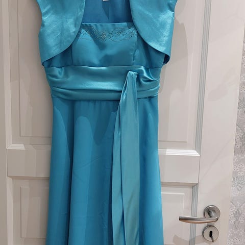 Ovh: Mekko 69,99€ ja bolero: M-koko ja uutena 24,99€.