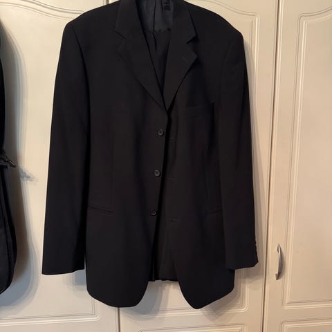 Myydään miesten musta Batistini puvuntakki, koko B 52. Käytettty muutaman kerran. Savuton talous.