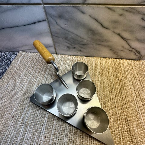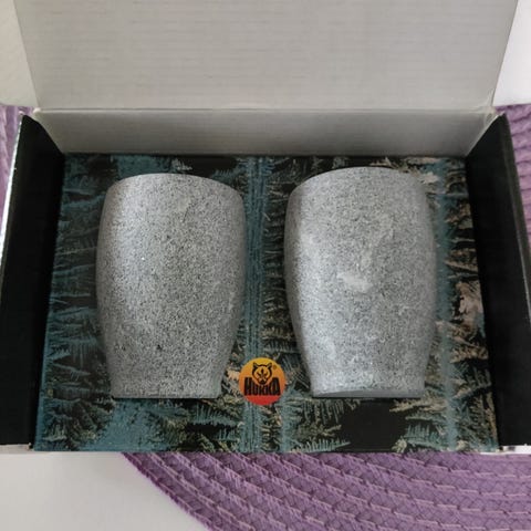 Harvinaisempi Muurlan snapsisetti puutarjoilualustalla. Alkuperäispaketissa.