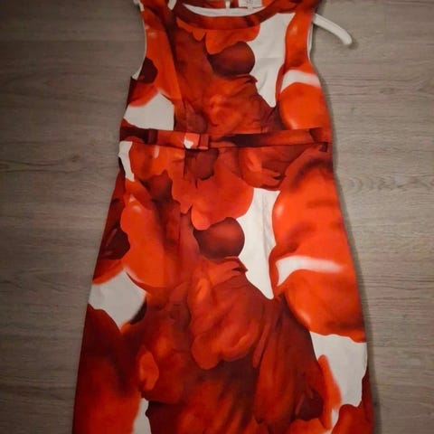 Uusi hopeakirjailtu mekko. Joustavaa kangasta. Pohjepituinen, edessä halkio. Käyttämätön. Koko M, sopii 40-42 koolle.