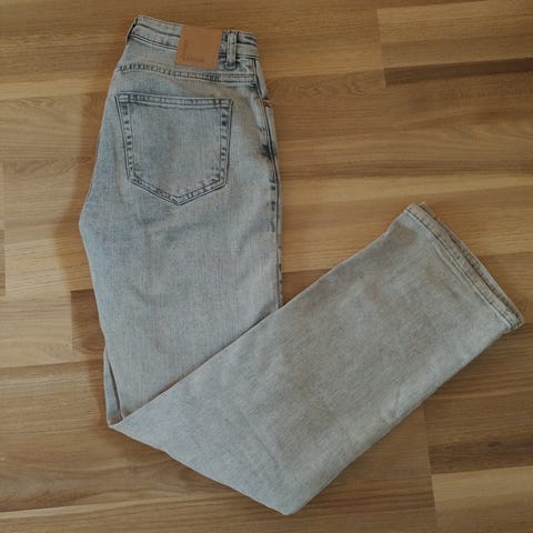 Gina tricosta ostetut kapealahkeiset farkut. S-koko. Vähän käytetyt, erinomaisessa kunnossa. Eläimetön ja savuton talous.