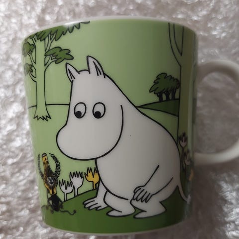 Hieman harvinaisempi muumimuki "Bokförslag Carlsen If" myyntiin. Erinomainen kunto, printti on hieman haalistunut. Tämä ei siis ole Arabian tekemä muki. Nouto tai toridiili.