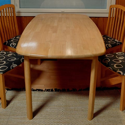 6 H Pöytäryhmä johon 4 kuvan mukaista tuolia vähän käytetty ollut lämpimässä varastossa myös voi tarjota