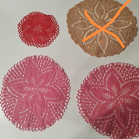Valkoisia lakanoita 4 kpl, joiden pituudet ovat 220 cm-200 cm ja leveydet 128-140 cm. Kolmessa lakanassa on toisessa päässä virkattu pitsi.