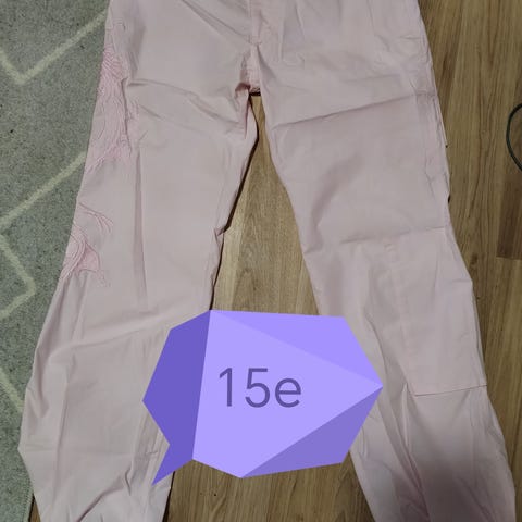 Vyötärö 38 ja sisähaarasta lahkeeseen 67 cm.