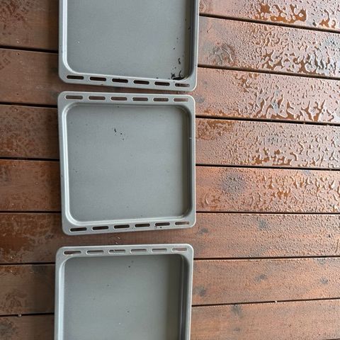 Siistipintaiset uunipellit (2 kpl). Koko 455 x 374 x 40 mm. Reunassa pieni kolhu (kuva). Hinta 10 €/kpl tai molemmat yhteensä 18 €.