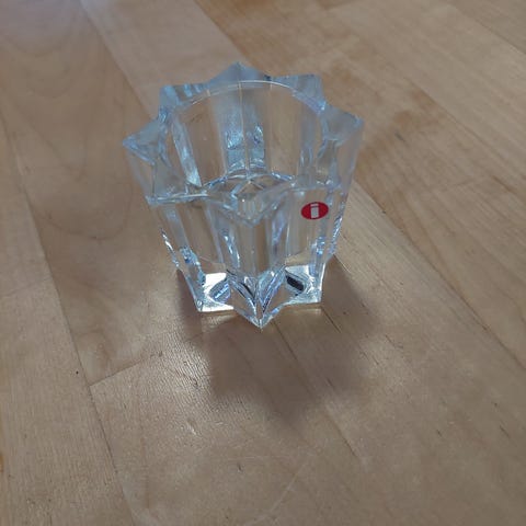Iittalan kirkas tähtituikku. Korkeus noin 6cm. Siisti, vähän käytetty. Reunassa pieni naarmu.