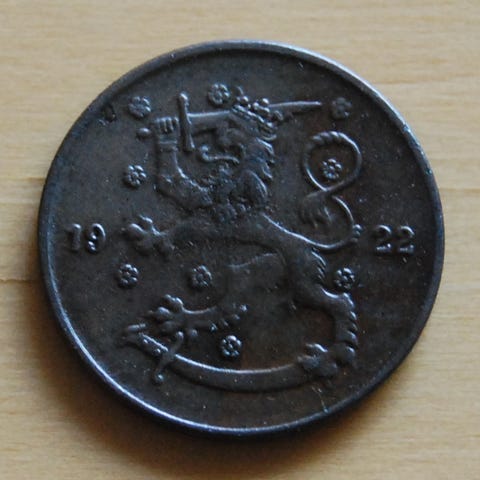 Vuoden 1918 tapahtumien alkuvaiheessa miehittivät punakaartilaiset mm. Helsingin ja näin sekä rahapaja että setelipaino joutuivat heidän haltuunsa. Rahapajasta löytyneellä uudella arvopuolella sekä kansanvaltuuskunnan uudelleensuunnitelemalla tunnuspuolella lyötiin kuparisia 5 pennin rahoja (KV I), joista tuli haluttuja muistoesineitä laillisen hallituksen palattua valtaan. Suuren kysynnän ja kohonneen arvon vuoksi tuntemattomat tahot teettivät rahasta ilmeisesti Saksassa erän kopioita (KV II) 1920-luvulla. Rahan tunnuspuolen eroavaisuuksien (KV I:ssa lippusalon kärki toiseksi ylimmän lehvän juuressa, KV II:ssa ylimmän lehvän juuressa) vuoksi eri tyypit on helppo tunnistaa. Rahasta (KV I) tunnetaan myös hopeinen versio, joka lienee Helteen aikakautena tuotettu "fantasiaraha".