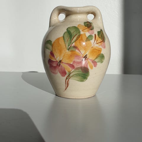 Pieni Kupittaan saven amfora 1950 luku käsinmaalattu signeerattu