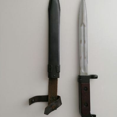 Hyväkuntoinen asevyö AK-47,pituus-140 cm.lev.-3cm.Valmistettu-50-60 luv.