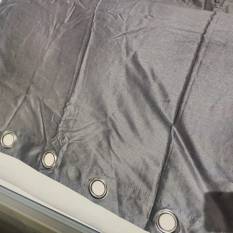 Erinomaisessa kunnossa oleva tumma verho. Pituus 270cm, leveys 130cm, lisäksi ripustuslenkit. Polyesteriä. Ostettu Stockmannilta